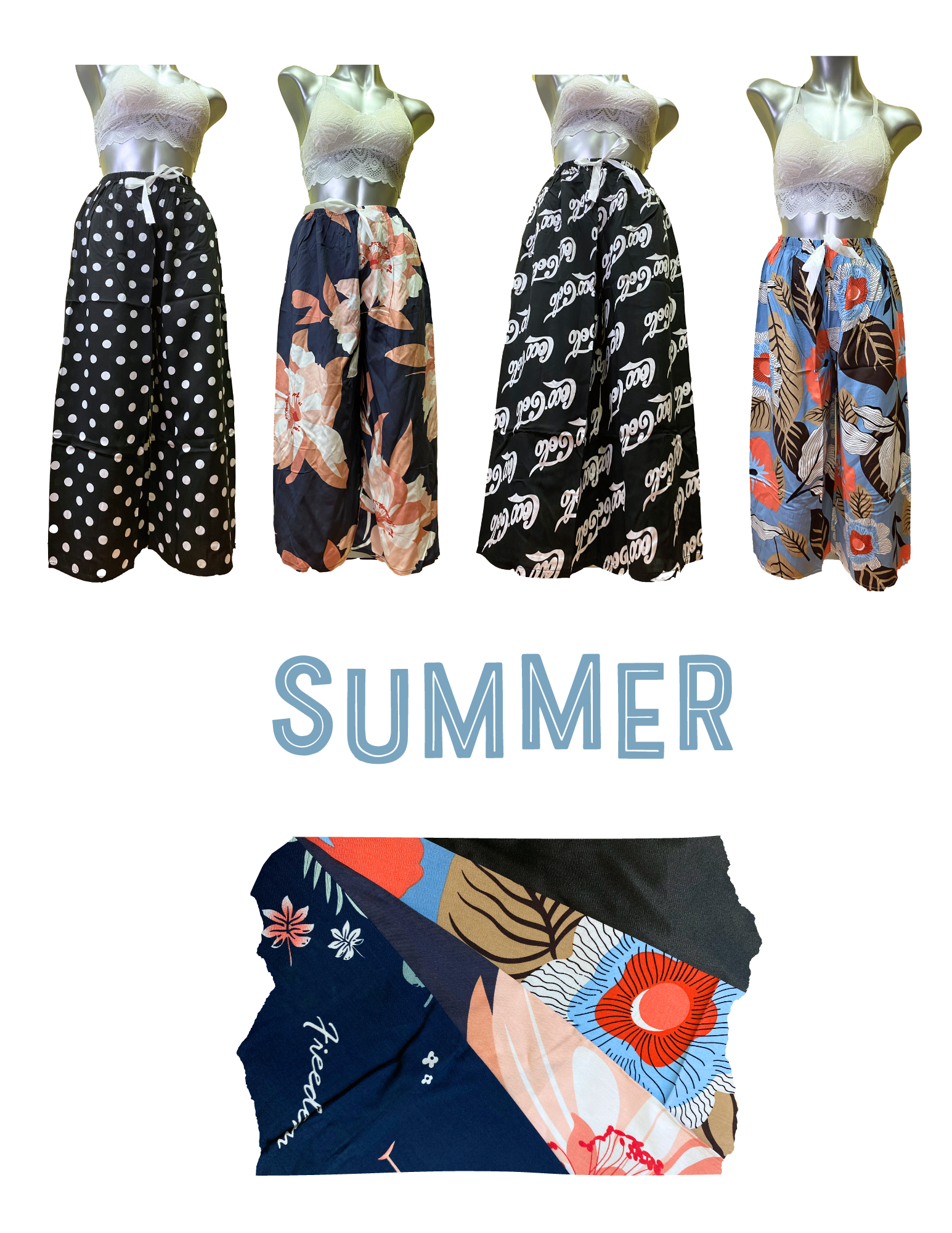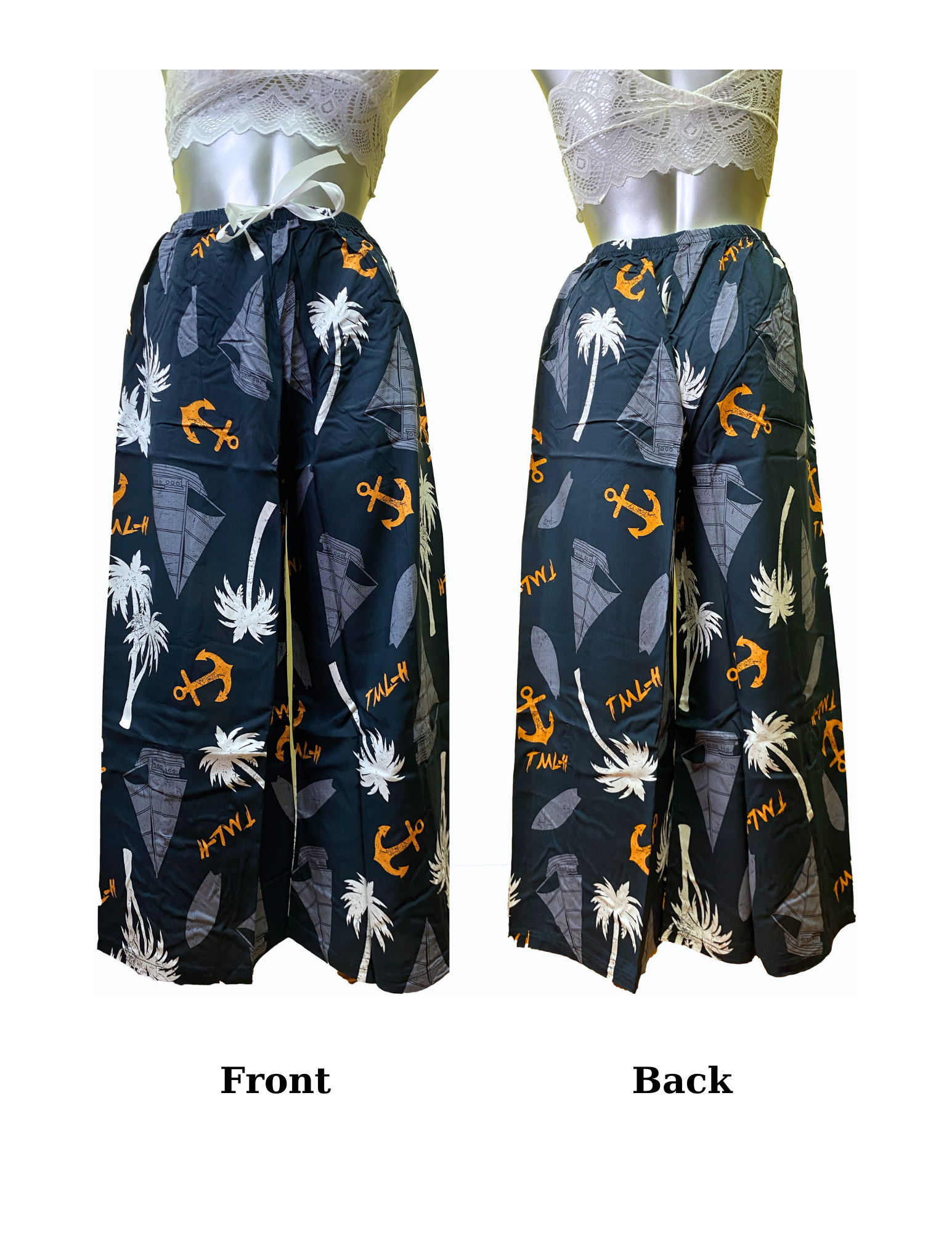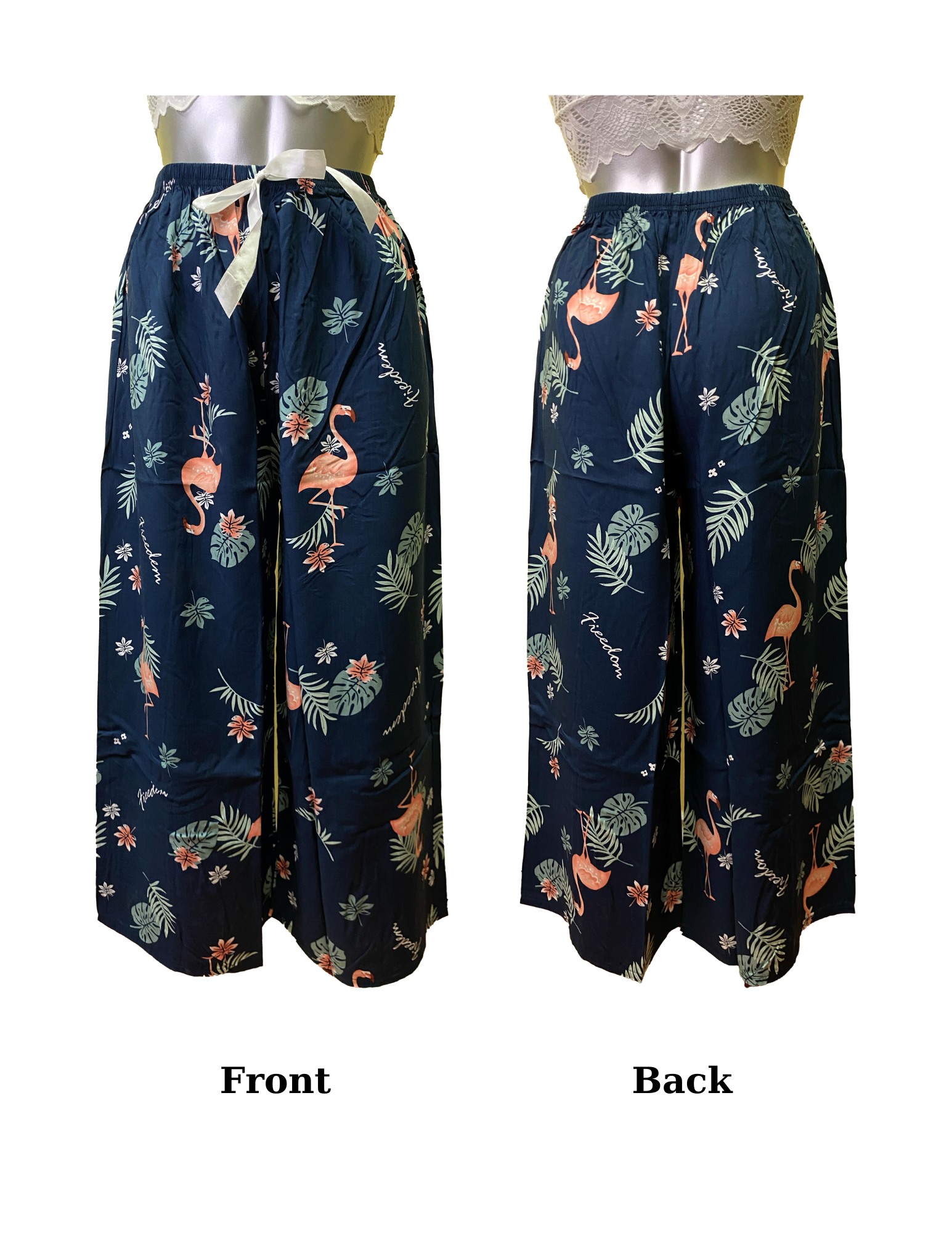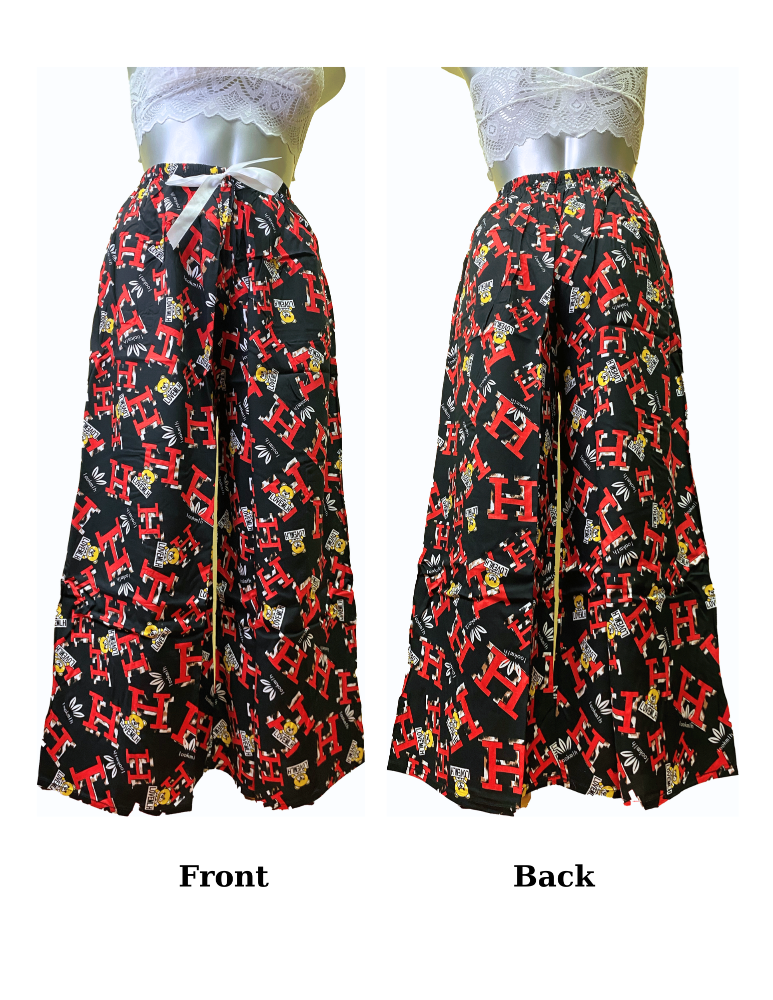 Patterned Wide-leg High-Waisted Pants (One size:Ea)
