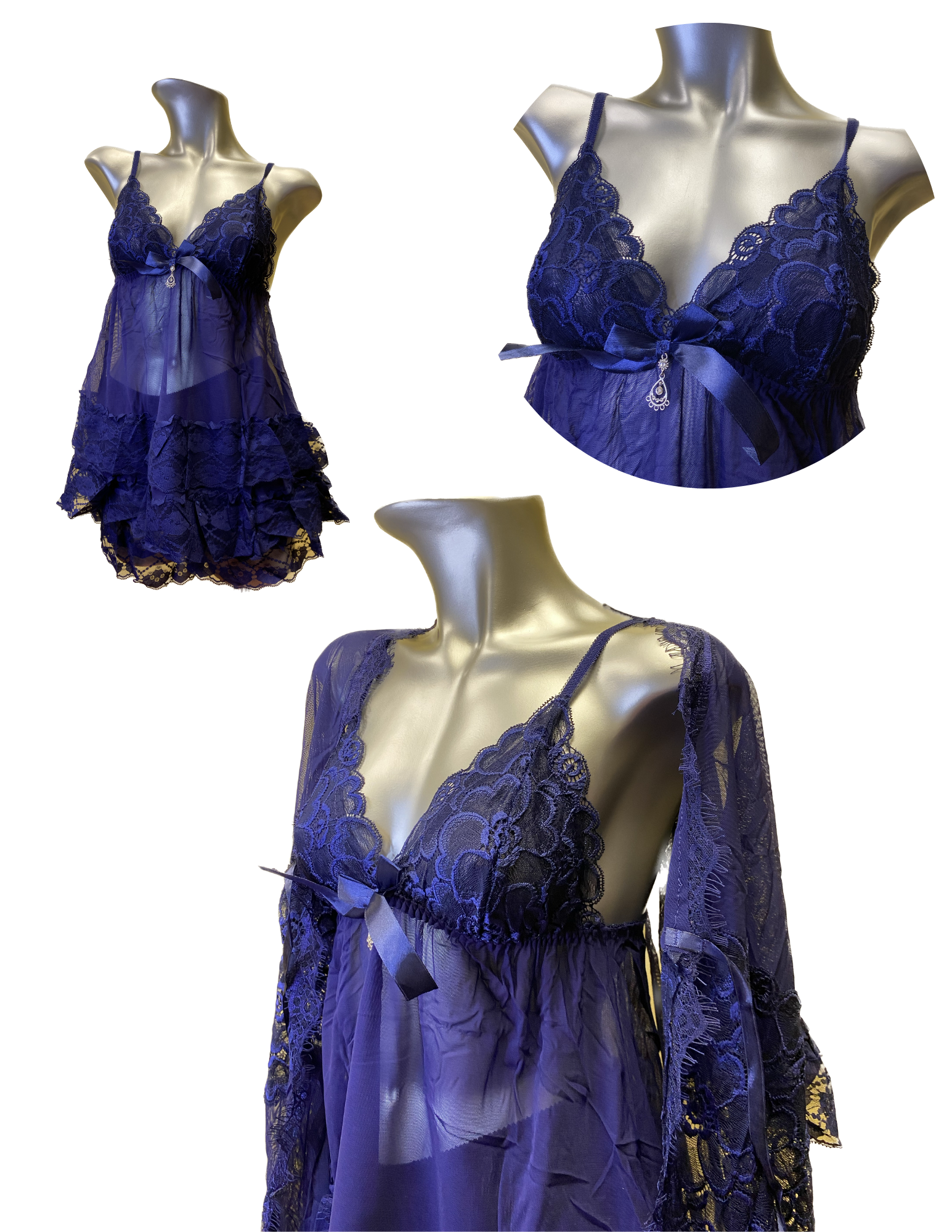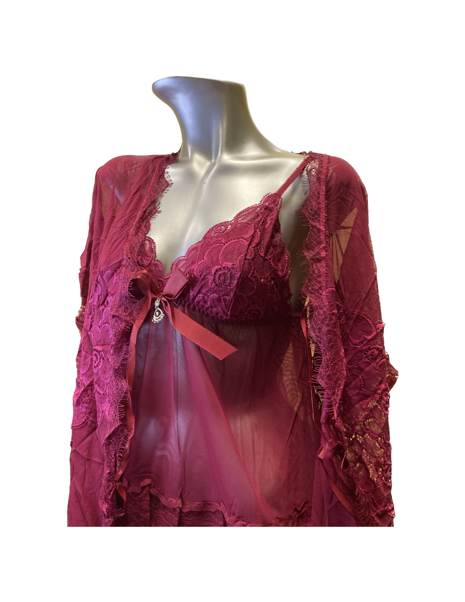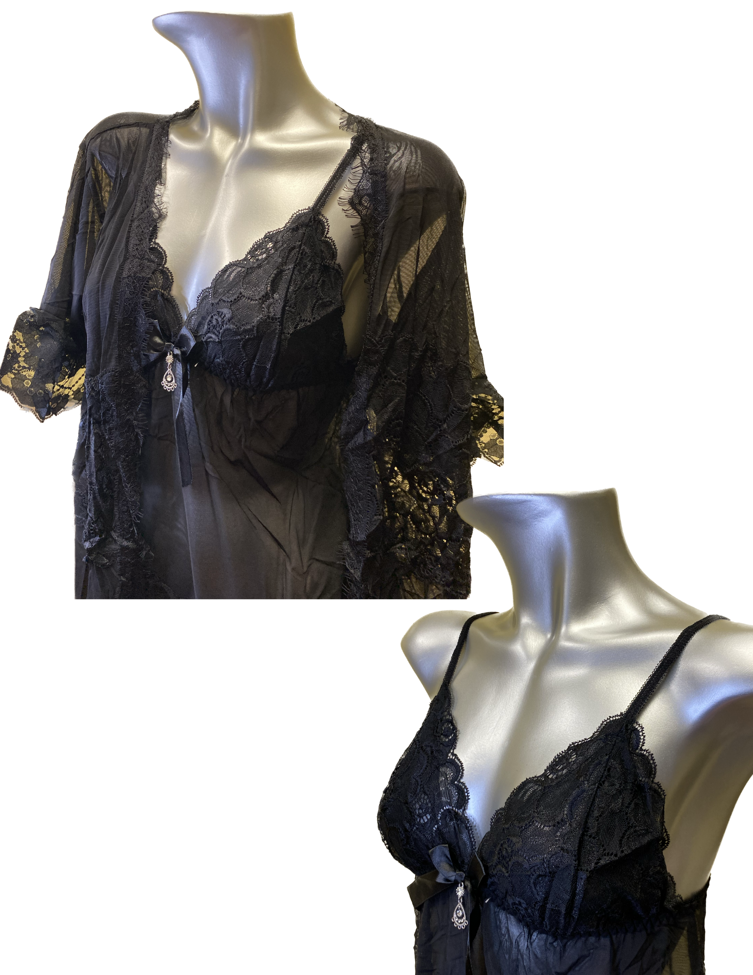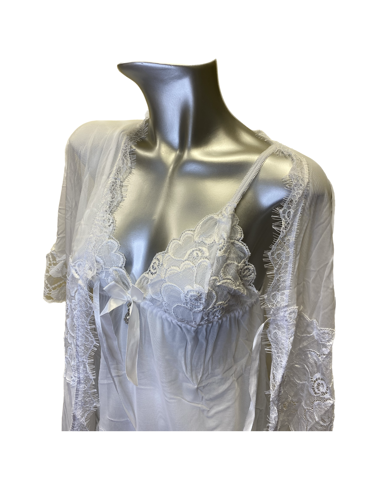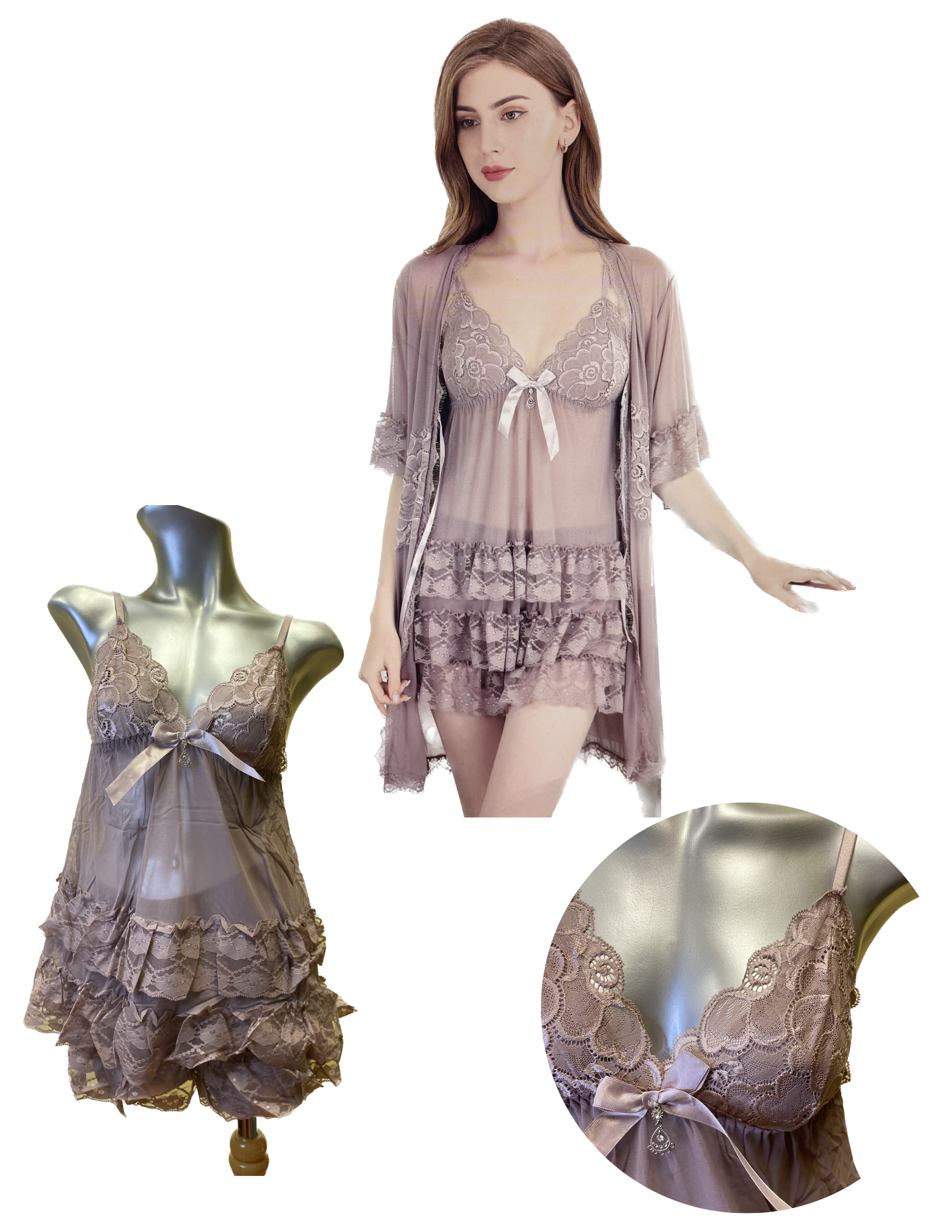 Soft Chiffon Pajamas Set - Layered Lace Combination And Robe
